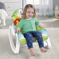 Com um assento fundo e aconchegante, encosto reclinável, vibrações calmantes e estofamento do assento colorido (que pode ser lavado na máquina), esta cadeira de balanço será o melhor assento (infantil) da casa!